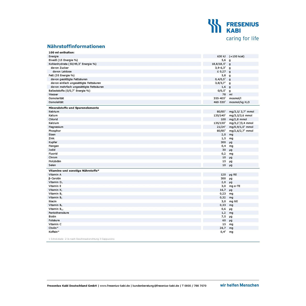 Der Fresubin energy DRINK besitzt ein ausgewogenes Fettsäuremuster für Herz-Kreislauf, Gefäße und Immunsystem und sorgt bereits ab 3 Drinks pro Tag für eine bedarfsdeckende Versorgung mit Vitaminen und Spurenelementen.